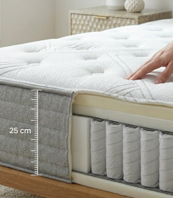 - • متخصصون في تكنولوجيا النوم: نعتمد في تصنيع مراتبنا على أجود الخامات من الأسفنج عالي الكثافة والسوست الكربونية المعالجة، لتوفير الدعم الكامل للعمود الفقري وضمان عمر افتراضي طويل.